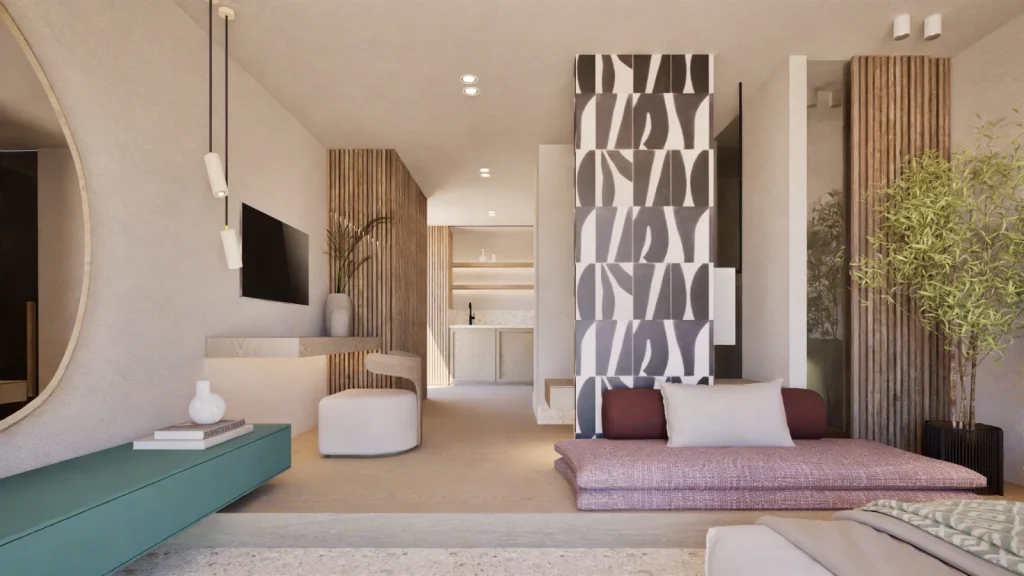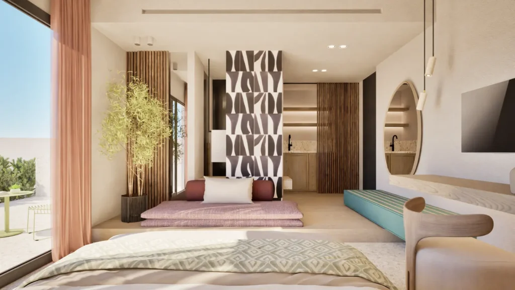Elegant and serene, the Sea View Junior Suite with Private Pool is designed for moments of true relaxation. Offering 25 m² of refined open-plan living space, this exclusive suite combines contemporary elegance with the natural beauty of Rhodes.